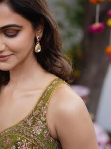 Allu Sneha Reddy showcased a timeless archival fashion moment in a traditional ensemble designed by Ritu Kumar. The look featured a beautifully crafted lehenga paired with a saree draped gracefully as a dupatta, creating a layered silhouette that highlighted classic Indian craftsmanship.