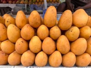 Truckloads rumble 250+ km to Batasingaram, Hyderabad’s unsung mango gateway on the city’s outskirts. This bustling fruit market hub receives 500–700 quintals of Banginapalli daily during peak season, sorting, ripening, and dispatching to city stalls. Vendors haggle under shamianas; loaders stack crates like golden bricks. From here, 200–300 quintals fan out to Hyderabad’s core markets weekly, fueling the fever, affordable at ₹90–110/kg retail, yet aspirational as the “safe king” for families, weddings, and post-meal bliss.