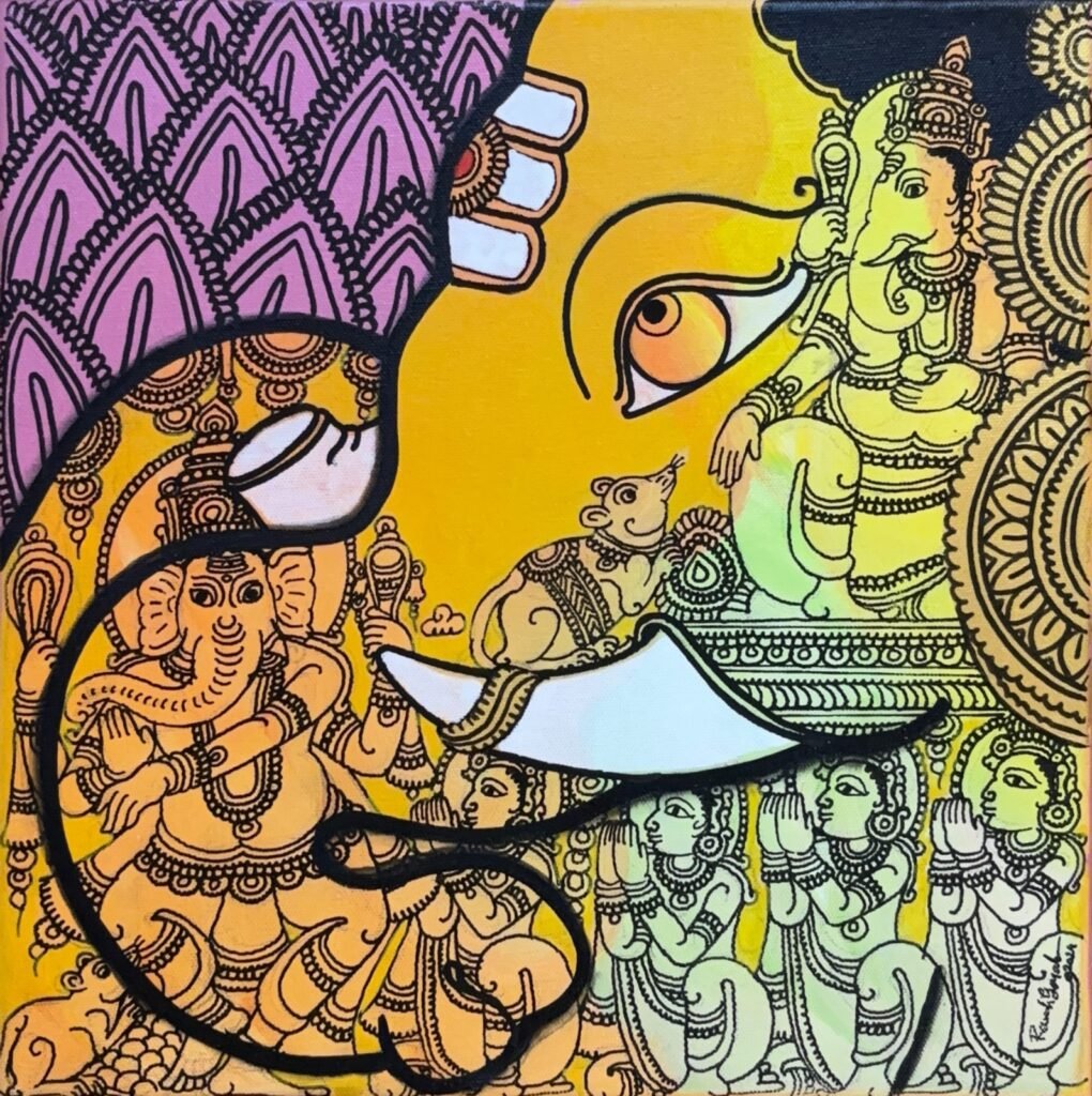The mythological thread underscored how sacred narratives remain relevant to contemporary practice. Amol Pawar’s Shiva, Om Swami’s divine figuration, and Ramesh Gorjala’s Kalamkari-inspired deities drew from iconographic traditions while bending them into modernist idioms. Younger voices like Akshay Anand Singh and Sukant Das demonstrated how even well-trodden mythological figures could be revitalized through naïve figuration or layered detail.