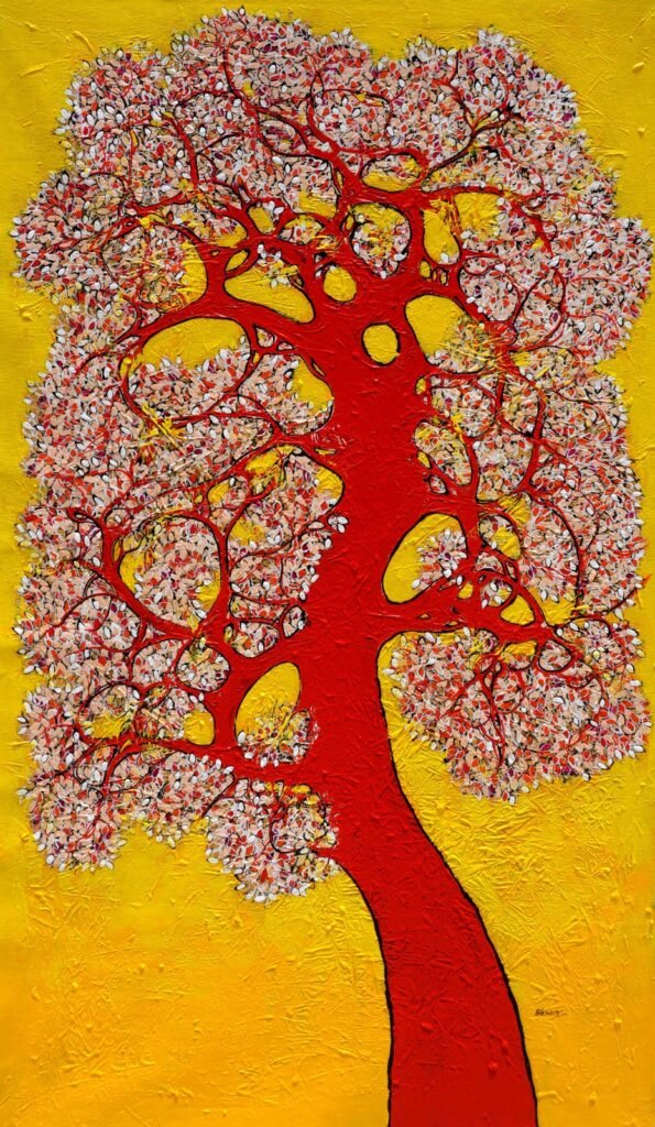 Feminine identity and emotional intimacy formed another current. Afza Tamkanat’s Thirst, Bandana Kumari’s Road Stars, and Swetaha Chandra’s Sanguinity variously explored relationships with nature, critiques of voyeurism, and symbolic optimism. Farhad Tamkanat, Sachin Sagare, and Anand Panchal offered more celebratory portrayals of women, while Jagannatha Paul’s semi-figurative works interrogated intimacy through cubistic structures.
