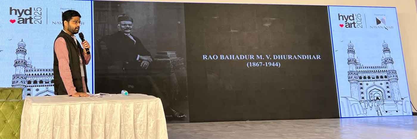 In the pulsating heart of Hyderabad’s finest District, where steel spires pierce the Deccan sky, the EON at Kokapet transformed into a sanctuary of artistic introspection during HYD ART 2025. Amidst cascading lights and whispered conversations, Sandeep Dahiskar, a luminous voice in India’s art heritage, unveiled the enigmatic journey of Murlidhar VyankateshDhurandhar (MV Dhurandhar). His talk wove a tapestry of nostalgia and revelation, inviting art aficionados to linger on brushstrokes that captured life’s fleeting rituals- births, unions, and farewells. Dahiskar’s words, delivered with the cadence of a storyteller, peeled back layers of time, revealing how Dhurandhar’s canvases from the early 1900s still ripple through contemporary studios.