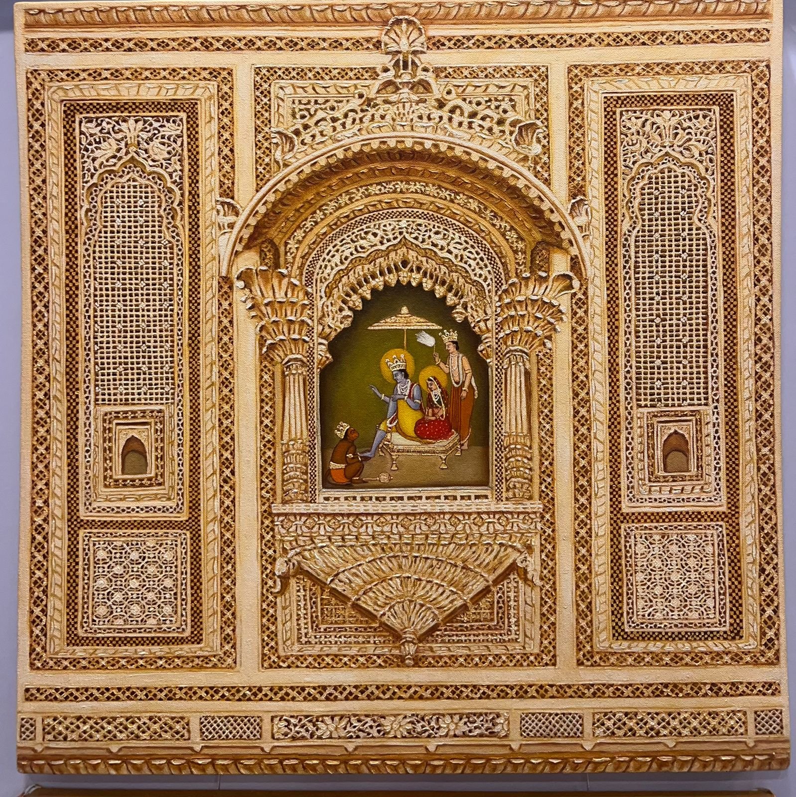A self-taught artist from Rajasthan, Anita Raj’s canvases carried the nostalgia of havelis through intricate windows and textured surfaces. Her oil works captured architectural memory, while her Buddha-inspired piece reflected spiritual philosophy, weaving visual storytelling with sacred verse in a quietly evocative manner.