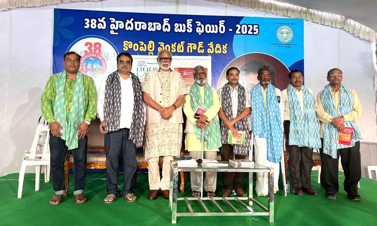 At Hyderabad International Book Fair held at NTR Stadium, Telangana Girijana Kshetralu, Jatharalu by author Dyavanapalli Satyanarayana, a detailed 350-page tome by Telangana Sahitya Akademi of the state’s pastoral tribal regions and sub-communities, complete with narratives, photos, and insights from 33 districts, was unveiled on December 26 at the Kompalli Venkat Goud Stage at 4 PM. Sidam Arju Master released the book, with Er. Vedakumar Manikonda, President of Deccan Heritage Academy Trust. Presiding amid lively interactions, discussions on the Gondwana and other tribal traditions, and signings to safeguard rural legacies from urban sprawl.