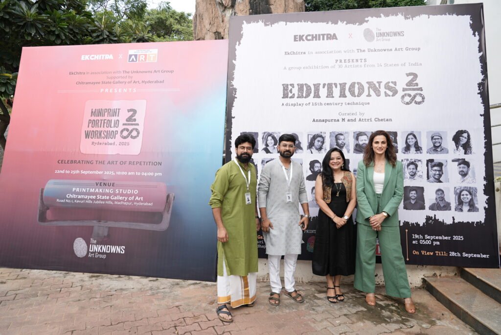 Hyderabad’s art calendar is witness to a rare celebration of a 15th century technique yet under represented medium — printmaking. Editions 2, a collaborative exhibition featuring 30 artists from 14 states unveiled on September 19, 2025, at 5:00 PM at the Chitramayee State Gallery of Art, Jubilee Hills