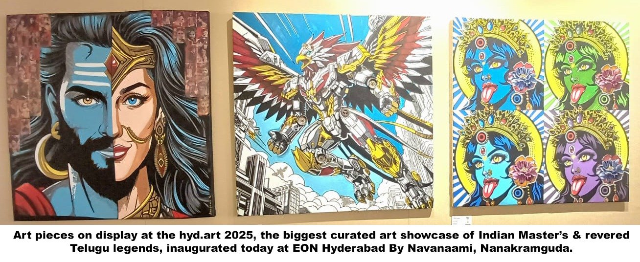 Annapurna Madipadiga said, Hyderabad finally has its signature art festival. hyd.art 2025, brings together over 200 artists, showcasing celebrated masters alongside 35 of the city’s finest talents, while offering national and international exposure. The festival honours legendary Telugu artists through Keerthanam, preserves heritage with documentaries on lost art forms, and features workshops, interactive art sessions, panel discussions, from folk art to art as an investment and curated presentations. A special highlight is the release of a book of 150 Mahatma Gandhi drawings by renowned cartoonist Shankar Pamarthy. Spanning three immersive days, hyd.art 2025, offers inspiration, learning, and a powerful celebration of Hyderabad’s vibrant art scene. Art needs patronage to flourish, and we sincerely thank the Navanaami Group for coming forward as co-sponsors and lending their wholehearted support to this artistic journey.