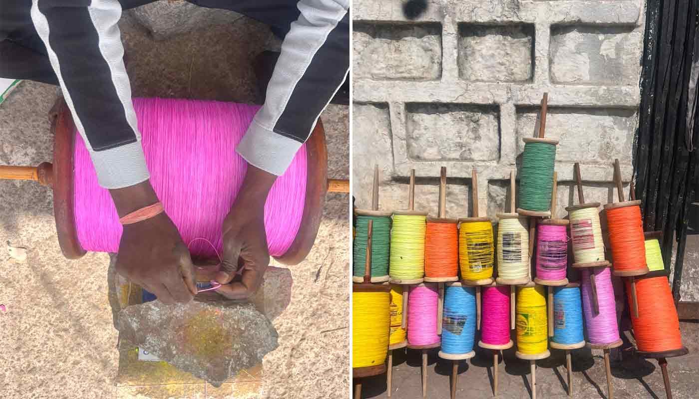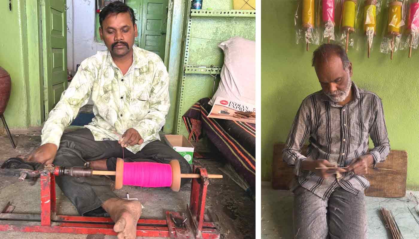 Manoj’s inventory boasts three prized varieties, sold by weight for precision in flight: the featherlight pond (one pound), the balanced half pound, and the robust panchka (five pounds equivalent in heft). These aren’t toys; they’re warriors graded for wind conditions and battles. The Doppan, a Dhoolpet classic resembling a diamond-shaped fighter, reigns supreme—sleek, responsive, and lethal with manja. Customers rave about the manja too, razor-sharp, yet durable, it slices through competitors in the frenzied pattar fights that light up Hyderabad’s Sankranti skies.