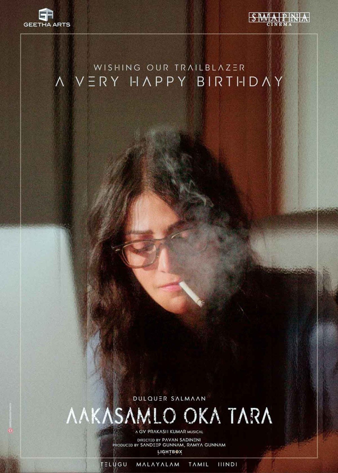 Shruti Haasan from the world of Dulquer Salmaan’s Aakasamlo Oka Tara; Presented By Geetha Arts & Swapna Cinema, Produced By Sandeep Gunnam, Ramya Gunnam, Pan-India theatrical release in summer 2026