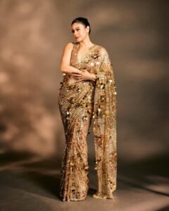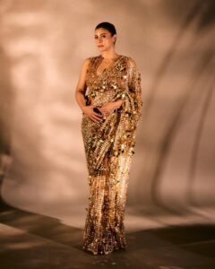Kajol radiated timeless elegance as she embraced the understated power of bronze in a signature Manish Malhotra sequin saree from the #MyMMSaree collection. The molten bronze hue draped effortlessly around her, reflecting warmth, depth and a quiet confidence that felt instinctively hers. With its luminous texture and refined craftsmanship, the saree highlighted Kajol’s natural grace, proving that some colours don’t merely enhance a look—they belong to the person wearing them.
