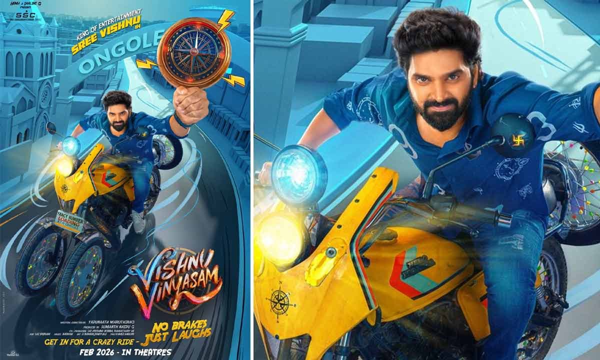 The makers today unveiled the film’s title through a stylish animated video that also offers a peek into its backdrop. Set in an urban milieu, the glimpse features Sree Vishnu zipping through the city on a custom yellow motorcycle, instantly setting the tone. The film has been intriguingly titled Vishnu Vinyasam, a name that perfectly mirrors the actor’s eccentric screen persona. Highlighting his off-the-wall antics and trademark humor, the title reveal is capped with the catchy tagline, “No Brakes – Just Laughs.” The video further heightens curiosity with a playful voiceover declaring, “History, Numerology, Astrology were all invented for him,” hinting at a breezy, fun-filled ride driven by an unforgettable protagonist. Radhan’s score further enhances the humour.