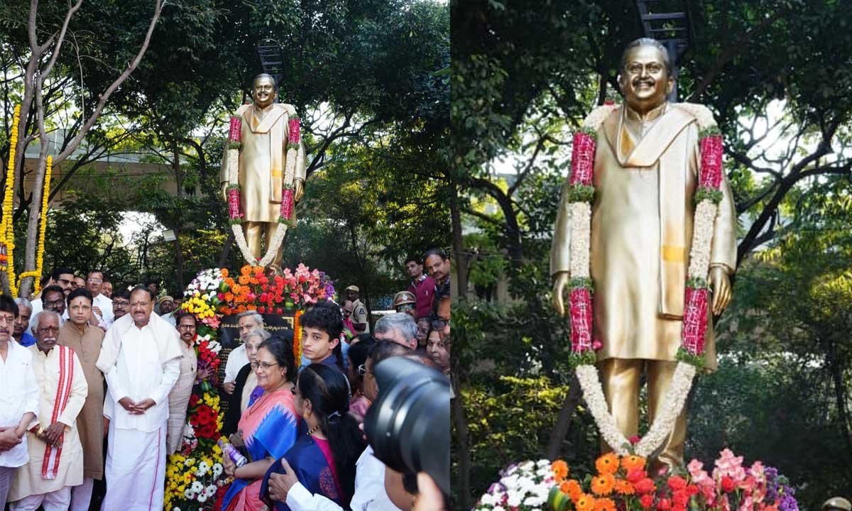 Venkaiah Naidu, former Governor, Bandaru Dattatreya, Telangana IT and Industries Minister and Duddilla Sridhar Babu participated and unveiled the bronze statue of SP Balasubrahmanyan as chief guests. M. Venkaiah Naidu called out to show respect for the language, respect Telugu people and get used to calling Telangana, Andhra Pradesh and Bala Subrahmanyam instead of TG, AP and SP. He said that Balasubrahmanyam was a talented, cultured, friendly with a perfect personality, and it is appropriate to place his statue next to the Ghantasala statue installed by him in Ravindra Bharathi.