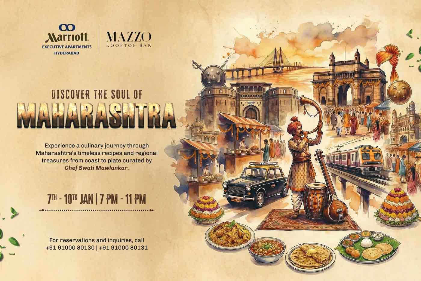 Kick off 2026 savouring genuine Maharashtrian cuisine at Mazzo, Marriott Executive Apartments Hyderabad. This special four-day event delivers authentic flavours from across Maharashtra, crafted by home chef Swati Mawlankar—celebrated in the city for her handmade modaks during Ganesh Chaturthi.
