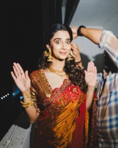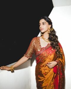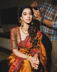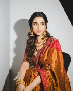 Meenakshi Chaudhary turns heads in a stunning custom-designed saree by Samta Gaidani, blending traditional elegance with contemporary finesse. The bespoke drape highlights intricate craftsmanship and refined detailing, perfectly complementing Meenakshi’s graceful presence and timeless charm.