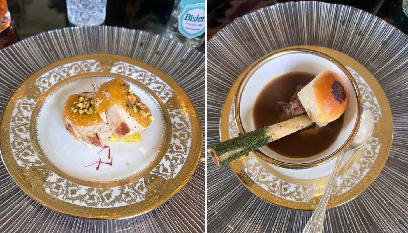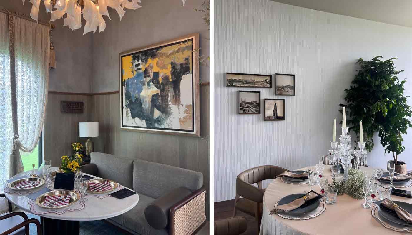 Designer Adil Ahmad transformed one villa into a maximalist marvel filled with awe-inspiring memories and presence, partnering with Tehzeeb restaurant led by Chef Shankar Krishnamurthy. The fusion9 director, with 25 years of global expertise, infused humanitarian purpose—sharing surplus food—into a multi-course meal: Kalmi Kebab starter, Kakori Kebab and Galouti Mutton Kabab mains with Sheermal, Shorba Soup, Lucknawi Gosht Korma with Kulcha, and Tulsi Kulfi finale. Guests dined amid opulent tablescapes on silver thalis, evoking Lucknow’s refined heritage against the villa’s grand, idea-fueled ambiance.