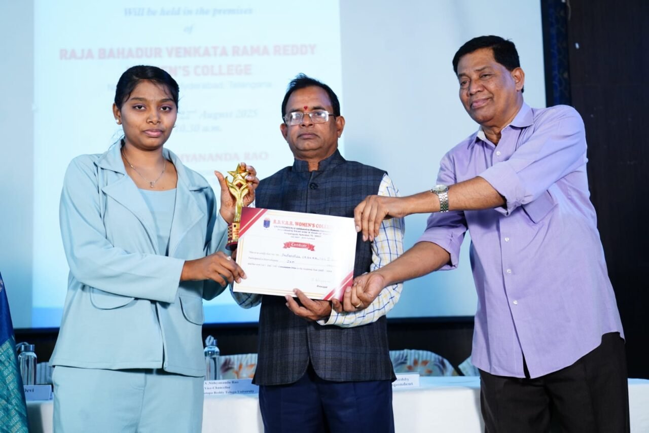 The formal program commenced with a speech by Principal Dr. J. Achyutha Devi, who addressed the gathering by highlighting the rich history of R. B.V.R.R Women’s College and emphasising Raja Bahadur’s pivotal role in advancing women’s education. She urged students and faculty alike to continue building on this legacy of empowerment and academic excellence.