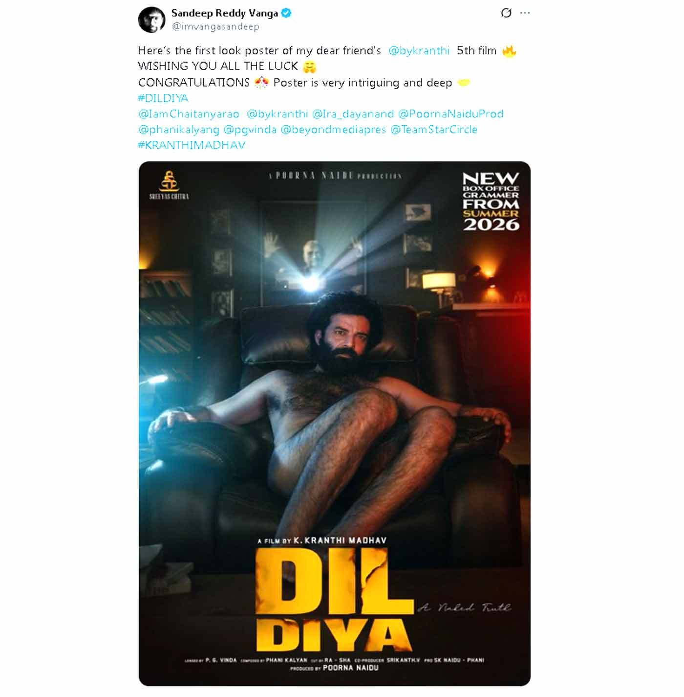 ‘Spirit’ Director Sandeep Reddy Vanga Launches the Title and First-Look Poster of K. Kranthi Madhav’s Dil Diya – A Naked Truth, a New Box-Office Grammar for Summer 2026