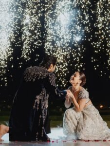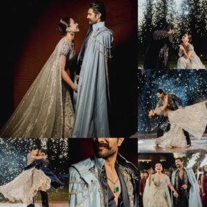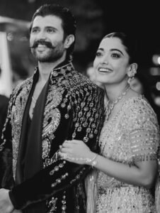 celebration, Vijay Deverakonda and Rashmika Mandanna embraced the signature glamour of Falguni Shane Peacock, stepping out in striking designer ensembles that reflected the label’s bold aesthetic.