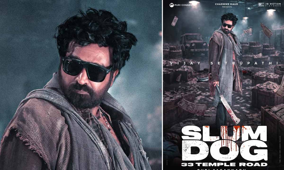 On the occasion of Vijay Sethupathi’s birthday, the makers unveiled the film’s title and first-look poster. Titled powerfully Slum Dog, with the tagline- 33 Temple Road, the first look poster features Vijay Sethupathi in a wild avatar, with disheveled hair and beard framing his intense look, donning a beggar’s outfit with a flowing scarf and boots, as he grips a massive sickle raised high amid stacks of cash fluttering chaotically in a dimly lit, fog-shrouded slum. The title and first look certainly build massive hype for this action entertainer.