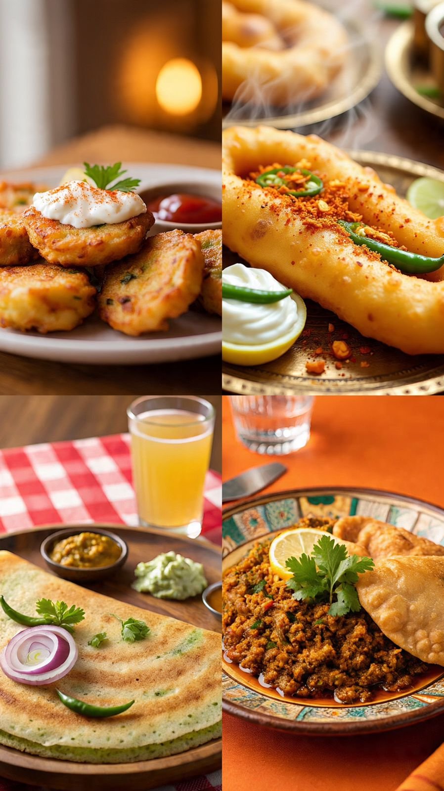 Mirchi Bajji: Large green chilies stuffed and fried—spicy and crispy.