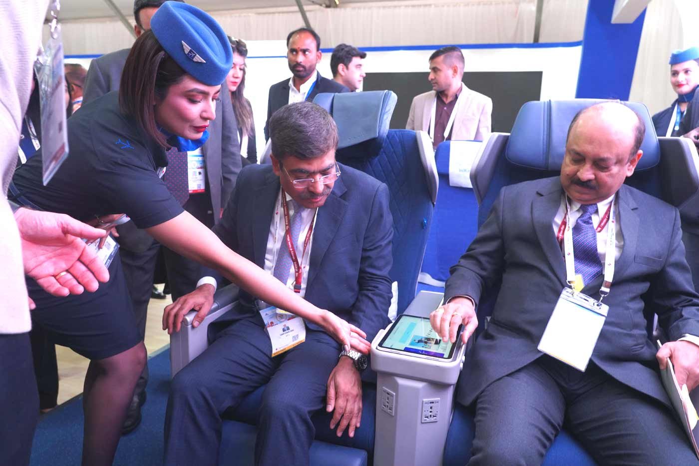 Mr. Ram Mohan Naidu Kinjarapu seen inaugurating the Static Display Area at Wings India alongside Campbell Wilson, CEO and MD Air India, MoCA Sec and Joint Sec Samir Kumar Sinha and Asangba Chuba Ao