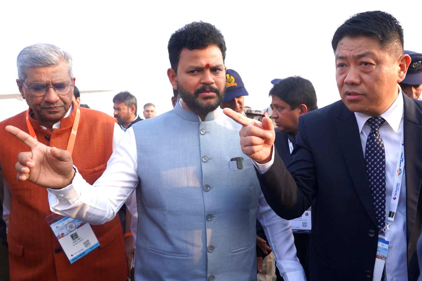 MoCA, Shri Ram Mohan Naidu Kinjarapu and Secretary MoCA, Shri Samir Kumar Sinha seen viewing the static display at Wings India 2026