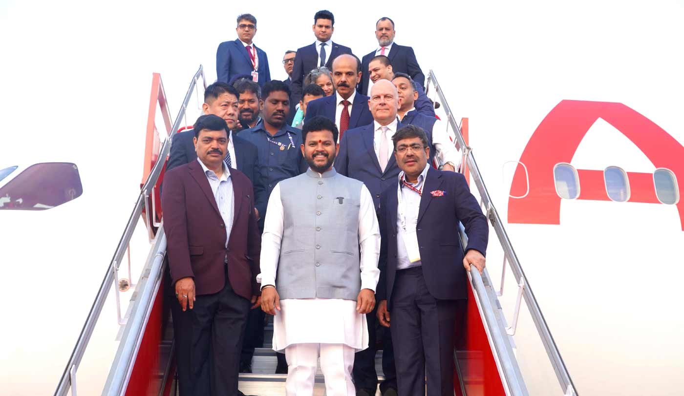 Mr. Ram Mohan Naidu Kinjarapu seen with Air India staff